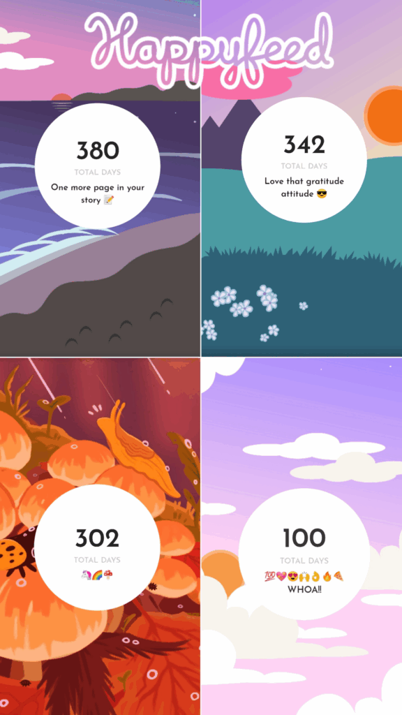 Collecting joyous moments with the self-care app Happyfeed! I’ve been doing it for over 400 days 🙂