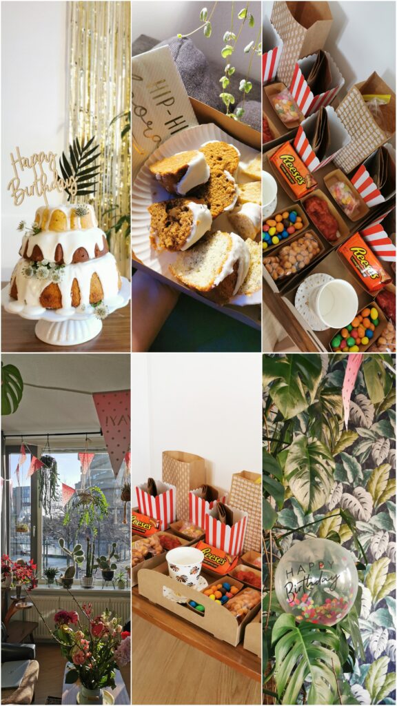 One thing me and my family started doing last year was online movie nights. We put on the same film and watch it ‘together’ from our own homes. For my birthday I made movie snack packs, including slices of my birthday cake, and brought them over to my parents’ and sister’s house. Since hey, SOMEONE’S gotta eat that cake and it’s not going to be just me and my boyfriend! (Although obviously, secretely, we ate waaay too much leftover cake, like all week…)