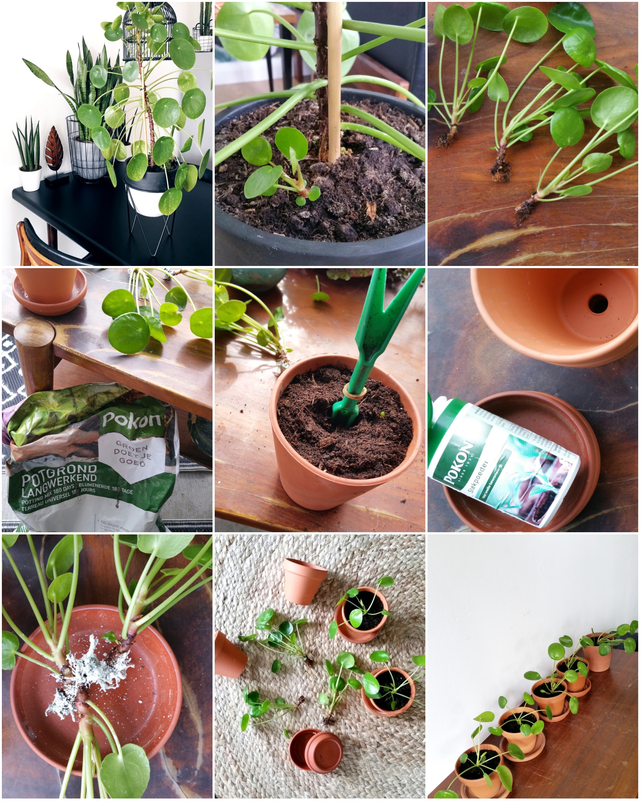 My Pilea adventure does in a way resemble this story as well and if you’ve been a proud Pilea mom for some time now, you probably recognize this ‘sharing story’ too. Although my story is now maybe more an addiction than anything else, really 😉 I once started out with 2 little plants as well. Today, cuttings (of cuttings, of cuttings) from those ‘mothership Pileas’ live in living rooms from my friends and family all over Holland. Not counting all of those cuttings, I now own over 30 Pilea at home. Many people who come over joke that I can definitely open my own Pilea store, haha!